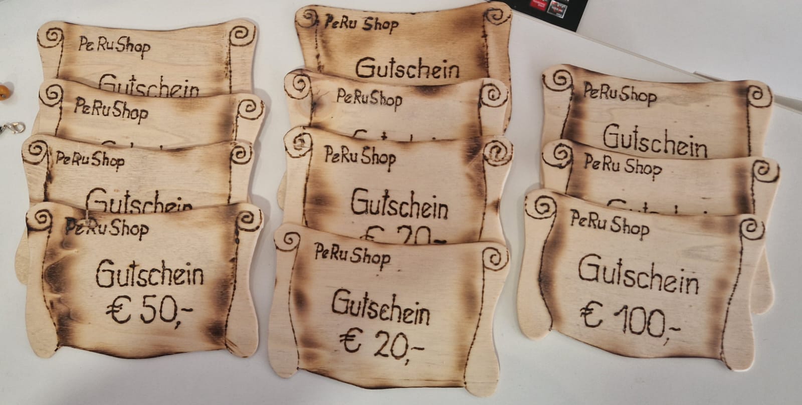 Jeder Gutschein wird von Hand auf eine Holztafel gefertigt und ist somit selbst ein kleines Unikat.